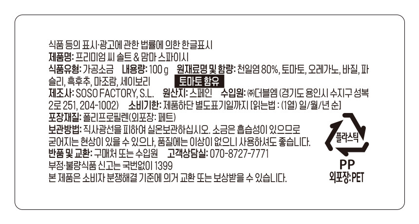 소소팩토리 프리미엄 솔트 & 맘마 스파이시
